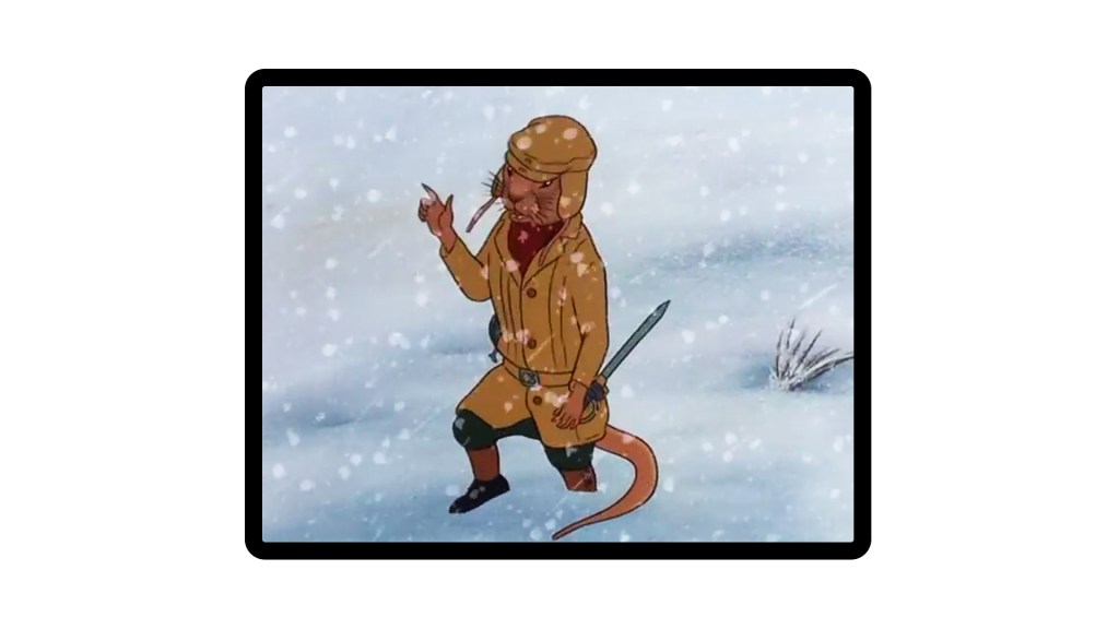 The ever gentle Mr Mole has one or two memorable fits too. Most notable being a lovely combo of belted overcoat in a royal blue shade, with a contrasting Red scarf thrown around the neck for added warmth out in the snow. The green socks add a further pop of colour and are somehow complimented well by black loafers. To me the eccentric styling here is actually quite Parisian, and channels a ‘French Ivy’ type of look, perhaps comparable to contemporary Drake’s or old Arny’s (R.I.P).