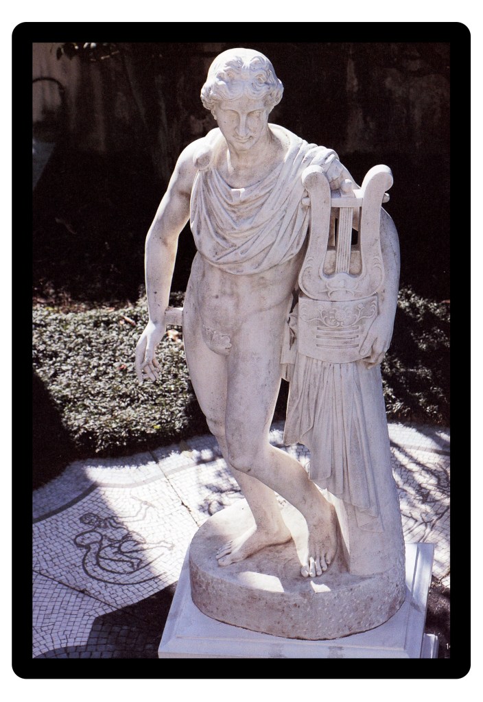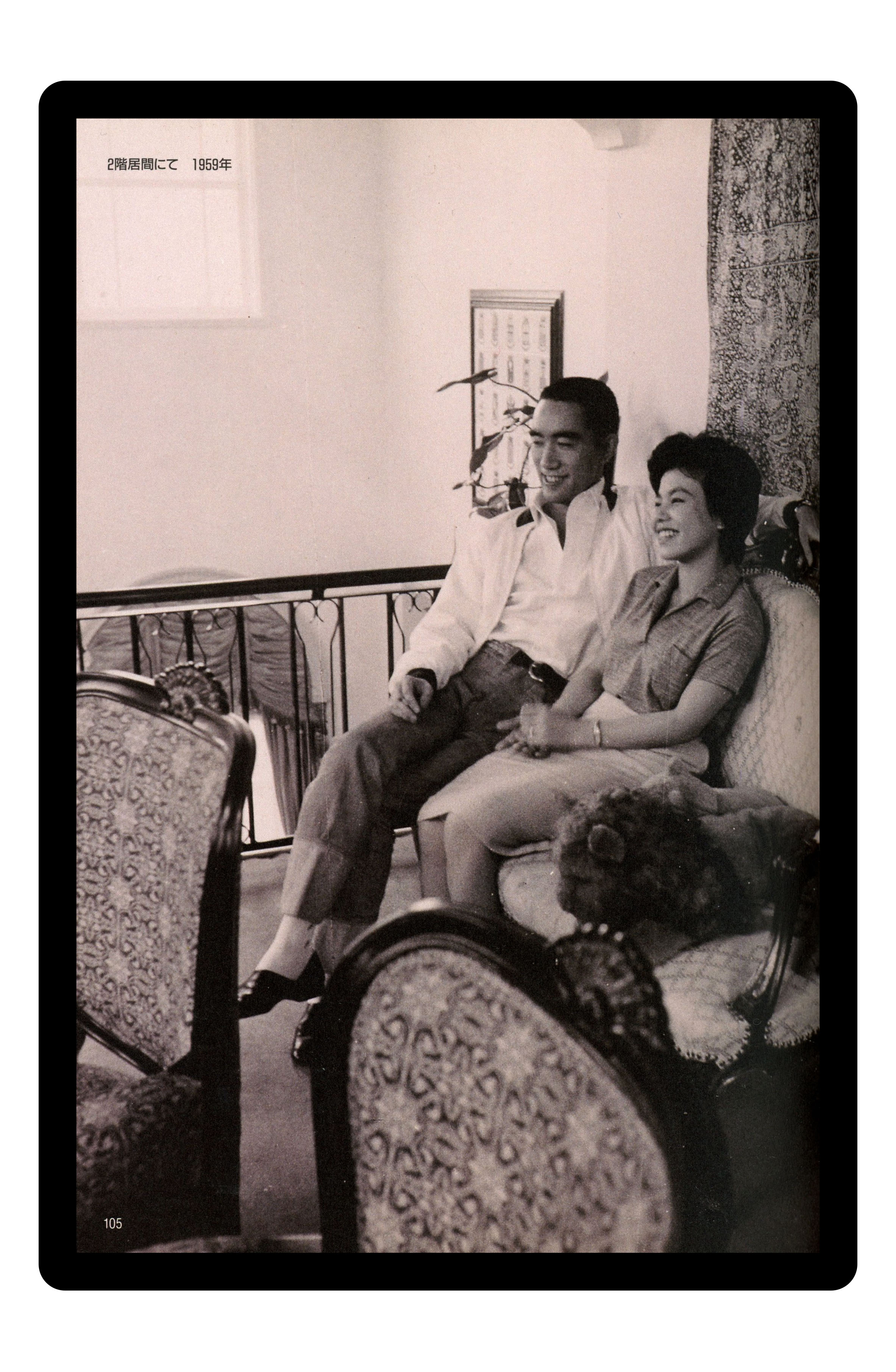 The house’s facade sets the tone for a classically inclined man, being made up in an architectural vernacular akin to a variety of French Neo-Classicism or perhaps a Regency Period townhouse. There is a small front garden, and in it stands a statue of the sun god Apollo, representative of Mishima’s solar world view. In keeping with the scale of building in Tokyo, the structure is rather compact, featuring humble living and dining areas decorated with pared back Baroque furnishings and immaculately curated antiques and ephemera, acquired on trips to Europe. There is a sizeable section of the book dedicated to Mishima’s study upstairs, and there are also some photos of an observatory style room with a uniquely designed rounded sofa.