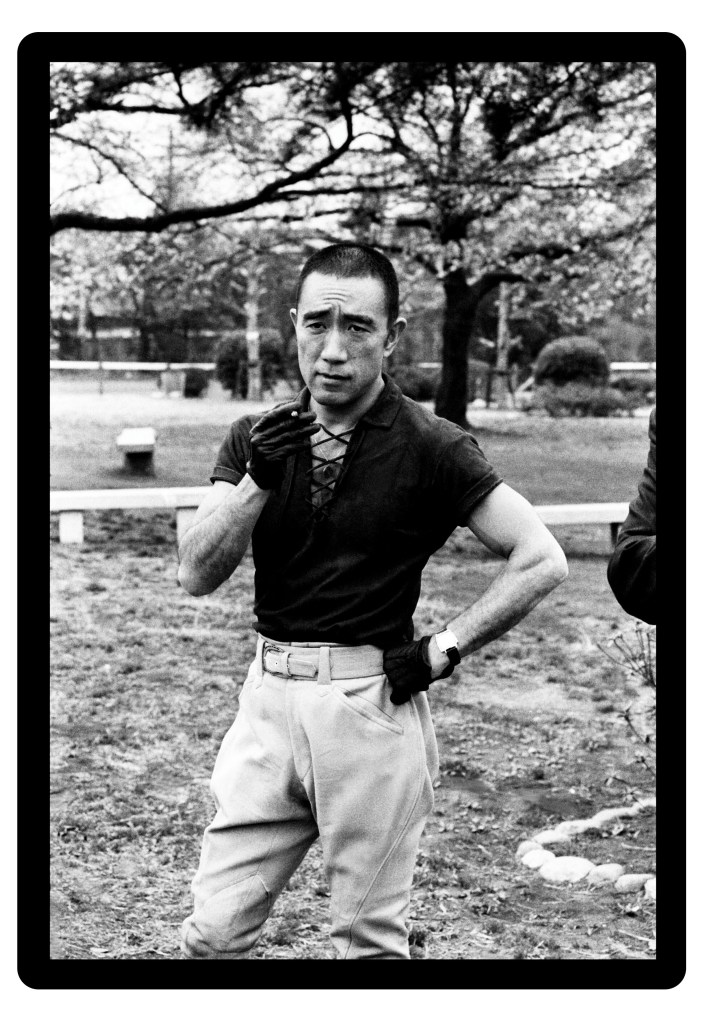Now, whether one looks at the life of Mishima as an extreme postmodern experiment in celebrity, or as a tribute to the cult of the samurai and a commitment to patriotic ideals, the fact remains that his visual legacy is a powerful one. Indeed, in many respects the photographs we have of Mishima summarise the man more succinctly than his novels ever could. Today his image finds favour in ‘vitalist’ circles online, and he has become a cult like figure for ‘sensitive young men’ and masculinity influencers alike. But whenever I have brought his name up to Japanese acquaintances in London, I am met with a sort of puzzlement, a confused laughter or even a slight disdain. It is clear that contemporary opinion of him in Japan is a mixed bag, and he remains somewhat of a mystery within even his own nation. None the less, the Mishima character continues to invite analysis and inquiry from across the spectrum. Today I wish to look at an element of his life that has not been focused on as much: his wardrobe.