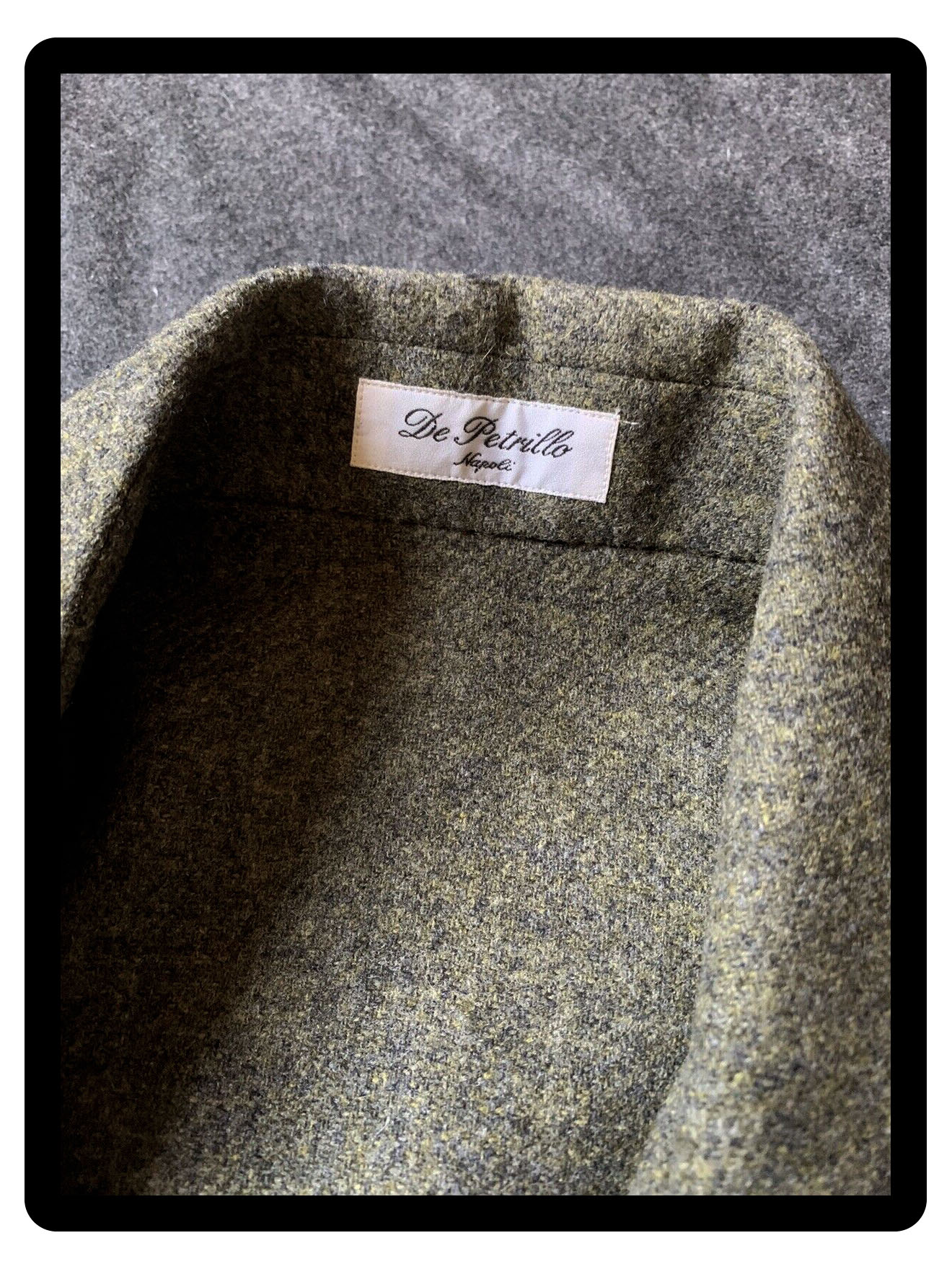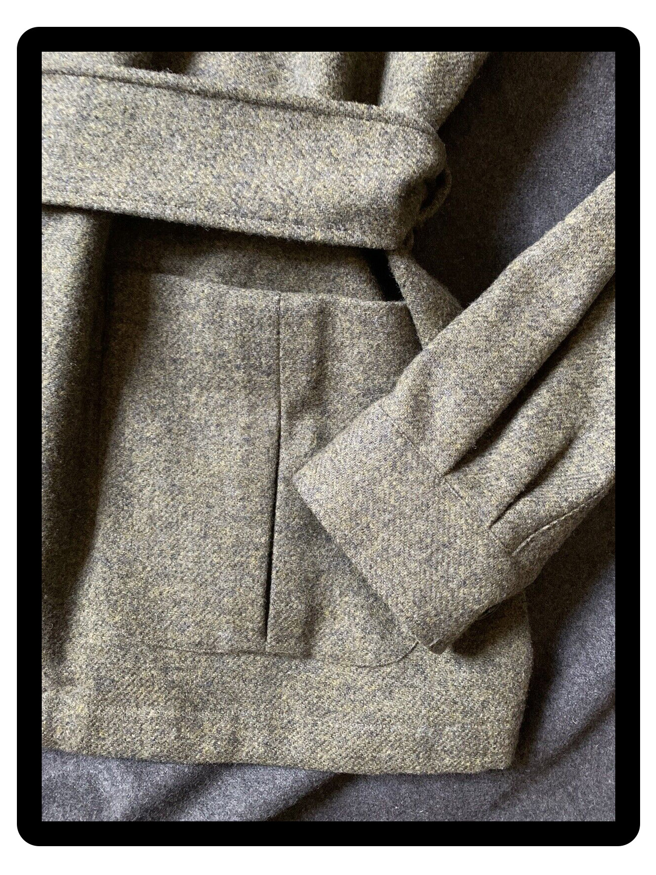 It is a philosophy of comfort and style that certainly comes across in this gorgeous piece I am spotlighting here today. Crafted by the magnificent De Petrillo, this one features four open front pockets, each with pleat detail and cotton lining for added comfort. A generous collar is present, and a belt which allows the wearer to cinch in the waist for a classic silhouette. The cloth it comes made up in is also rather exquisite. A Grey Woollen twill that has these very characterful mossy Green inflections, almost tweed like. This is a great example of what the Italians do best: luxury takes on quintessentially British patterns. Surely worthy of the title ‘Elegant’…