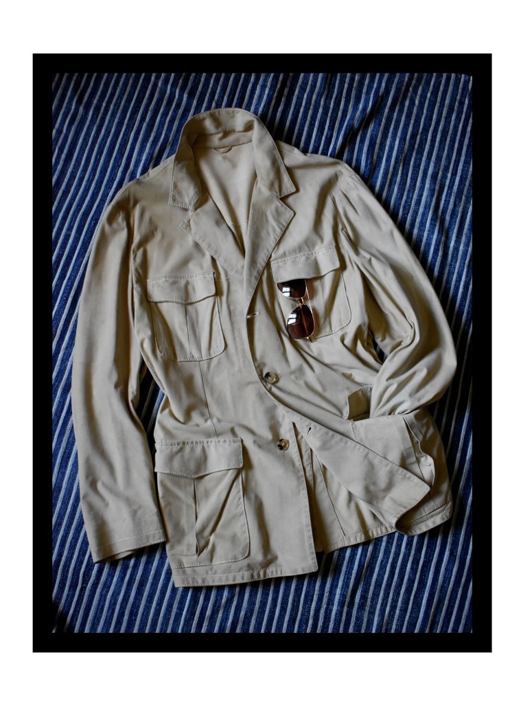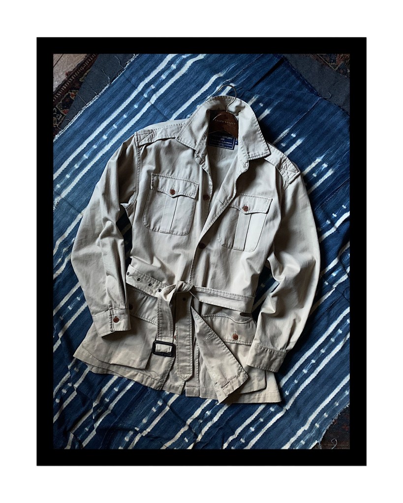 And clearly that seed did grow, as the safari jacket has since become one of my most adored outerwear patterns. To me, it is one of those ‘ultimate’ jackets, in the sense that the possibilities of customisation are almost endless, and no two safari jackets are ever really quite the same. Here is a selection of some vintage ones I have sold in the Sartorium over the last year (By Polo, J Peterman, Pal Zileri and others):
