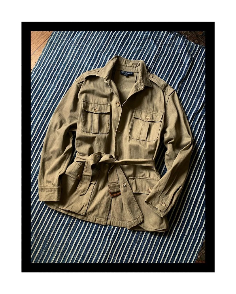 Unfortunately though, the 1970s was also the decade in which synthetic fabrics were reaching the height of their popularity, and many cheap and nasty ‘Safari Suits’ in Polyester were made to cash in on the trend. Hence forth, the reputation of the Safari jacket would be sullied, consequently being resigned to the ‘Stuffy’ pile. And although brands like Ralph Lauren would continue to see the romance in them (Polo recreations of an 80s or 90s vintage are some of the best actually), from this point on it seems as though the Safari Jacket ‘moment’ was over.