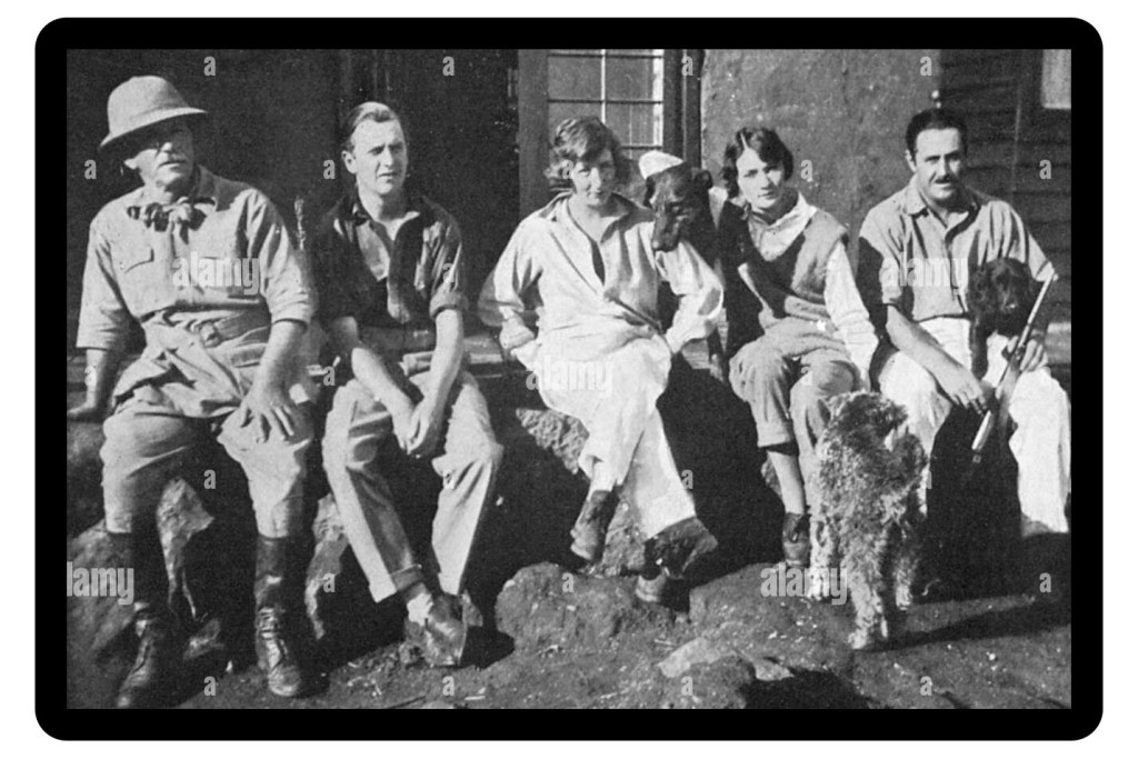 They would first find cache in colonial circles like the ‘Happy Valley Set’ of of Kenya, where British Army bush jackets came to be worn in a civilian context after many had become enamoured with them in the tropical theatres of WW1. We can see a classic pattern being worn here by a one ‘Trevor Sheen’ in this 1926 photo featuring Lady Idina Hay and Earl Errol: