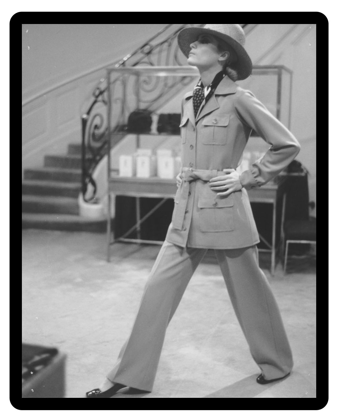 It seems like the jacket very much stayed true to its military roots until the late 1960s, when Yves Saint Laurent introduced it in a runway context for ladies. This time with a longer, slimmer cut, and a more exaggerated point collar. Subsequently a precedent was set, as the garment became imbued with certain sense of louche glamour.
